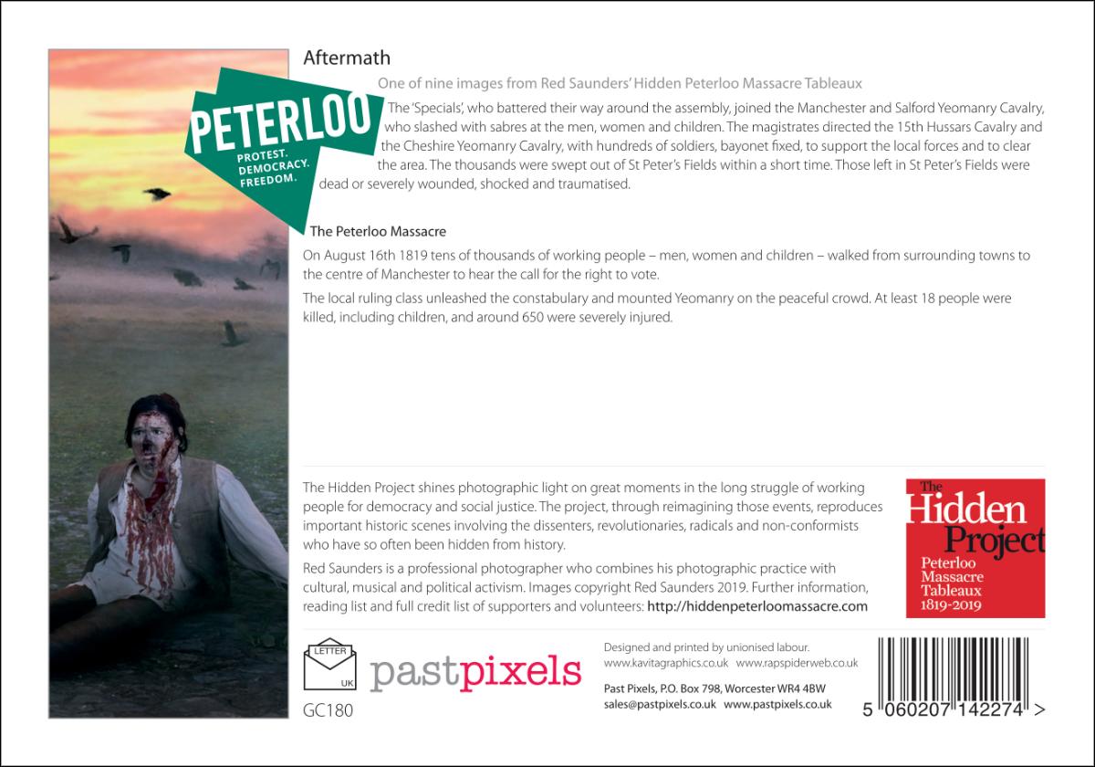 Red Saunders is a professional photographer who combines his photographic practice with cultural, musical and political activism. Images copyright Red Saunders 2019. Further information, reading list and full credit list of supporters and volunteers: www.hiddenpeterloomassacre.com . For further information hiddenproject@clara.co.uk