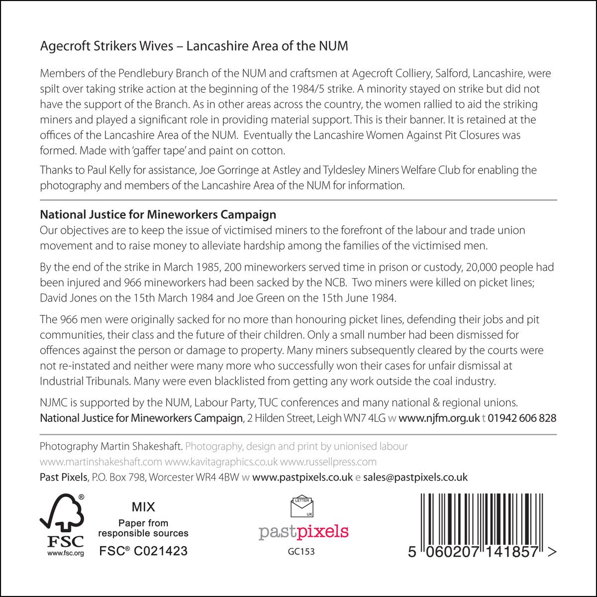 Thanks to Paul Kelly for assistance, Joe Gorringe at Astley and Tyldesley Miners Welfare Club for enabling the photography and members of the Lancashire Area of the NUM for information.