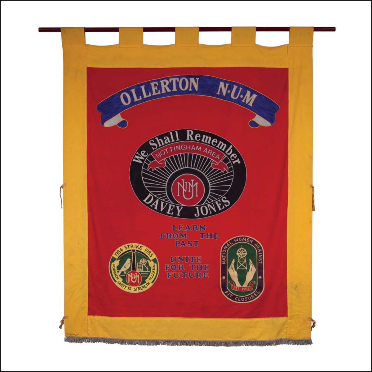 The So Few So Strong group of pickets were sustained by the women’s support groups and Norwich Miners’ Support group, acknowledged on the rear. The banner also commemorates Davey Jones, Frickley NUM, who died on the picket line at Ollerton Colliery on 15th March 1984.