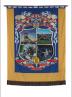 The banner was made in early 2014 by Chippenham Designs, painted in acrylic paint on polycotton fabric and is 200 cm wide and 245 cm high. The front depicts some key features of the history and culture of the union. The rear shows the Miners’ Offices at Barnsley and the Memorial with the inscription “In memory of those who have lost their lives in supporting their union in times of struggle”.