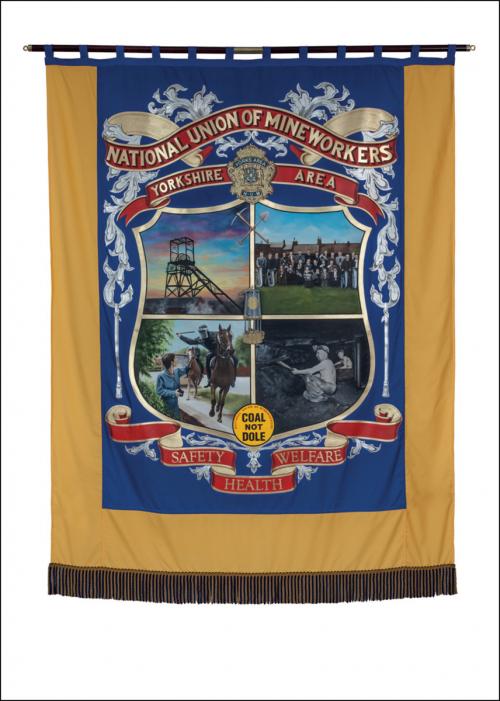 Thanks to the Yorkshire Area of the National Union of Mineworkers for permission to photograph and reproduce this banner. Image copyright NUM.