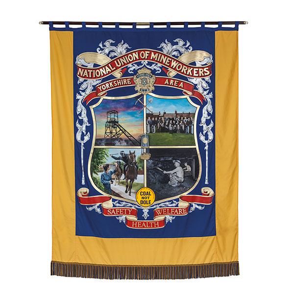 Thanks to the Yorkshire Area of the National Union of Mineworkers for permission to photograph and reproduce this banner. Image copyright NUM.