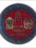 25mm round, gilt, blue and red.