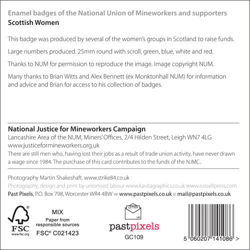 Many thanks to Brian Witts for information, advice and access to his collection. He produces the definitive book about the enamel badges and a large format poster using images of the badges to illustrate the wreckage caused by the Thatcher government to the mining industry and the mining communities. Brian ended his mining career at Littleton Colliery in the Midlands.