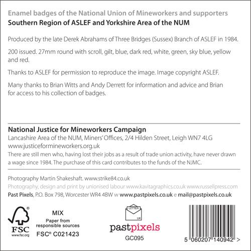 Many thanks to Brian Witts for information, advice and access to his collection. He produces the definitive book about the enamel badges and a large format poster using images of the badges to illustrate the wreckage caused by the Thatcher government to the mining industry and the mining communities. Brian ended his mining career at Littleton Colliery in the Midlands.