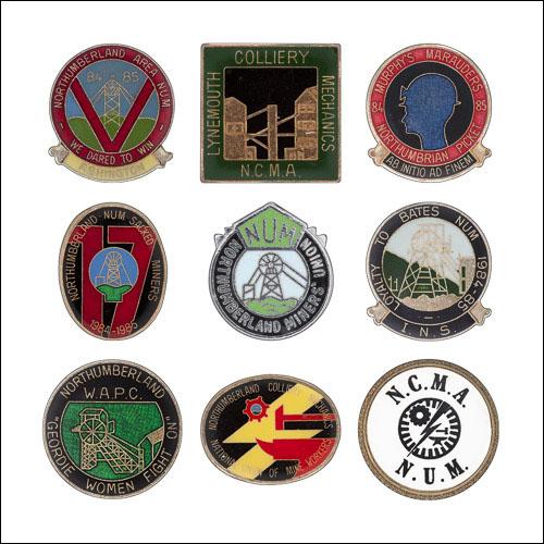 A collection of nine badges from branches from Northumberland. Listed from top left to bottom right.