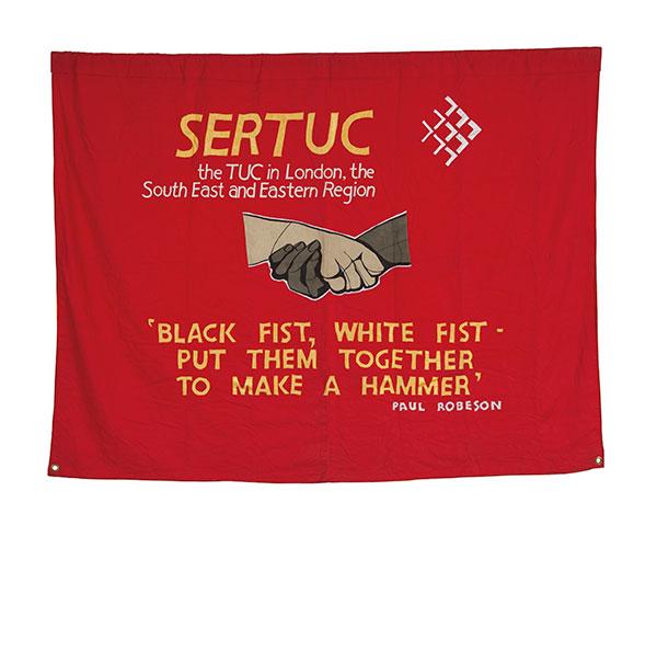 The SERTUC banner was commissioned and produced in 2006. It is a mixture of stitched fabric and paint and was designed and made by Ed Hall.