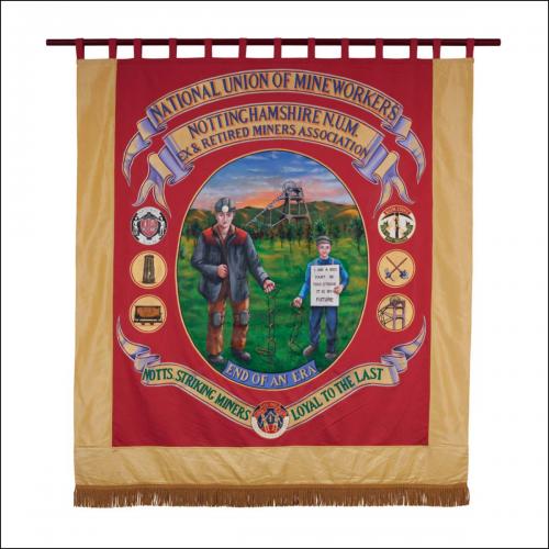 Thanks to Eric Eaton and Ann Donlan for information. Thanks to the Nottinghamshire NUM Ex & Retired Miners Association for permission to photograph this banner. Image copyright.