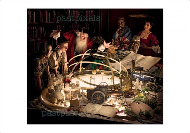 Three historic and globally significant moments for the city have been recreated by Red in three photographic tableaux for the new Museum of Making, this being one. This photograph takes as its starting point the ground-breaking painting, known as The Orrery, created by Joseph Wright of Derby in 1766. Wright is known for his works depicting marvels of scientific discovery at a time often called the Enlightenment.