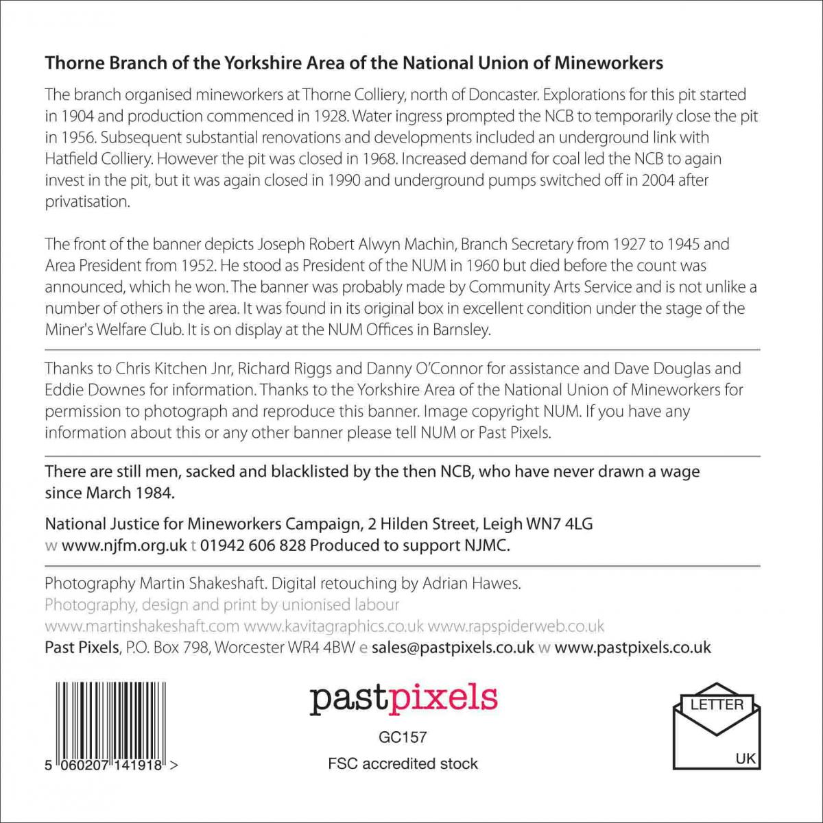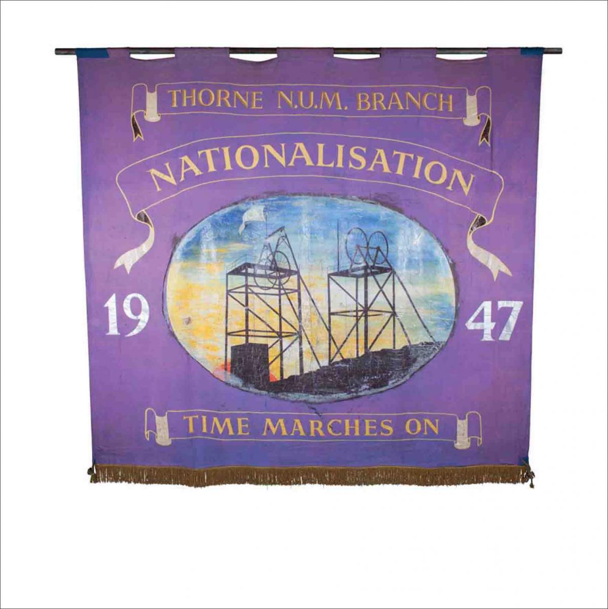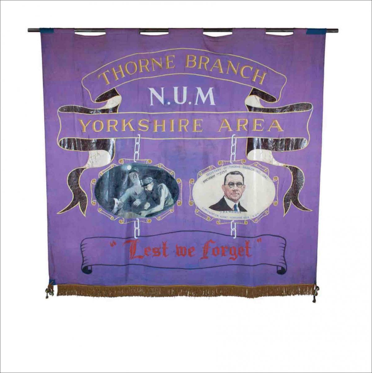 Thanks to the Yorkshire Area of the National Union of Mineworkers for permission to photograph and reproduce this banner. Image copyright NUM.