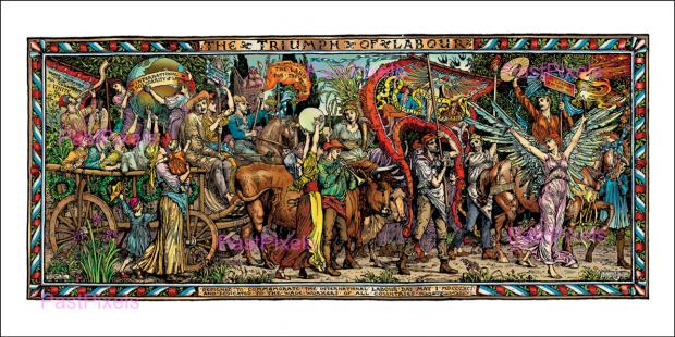 The Second International, an organisation of socialist and labour parties, declared in 1899 that May 1st would be International Workers’ Day. The date arose from earlier activities by the American Federation of Labour in its campaign for an eight-hour day. In particular it became of significance because of the deaths of workers at the hands of the police in 1884 and the executions of the Haymarket Anarchists of Chicago in 1887. Walter Crane produced a cartoon to draw public attention to their plight.
